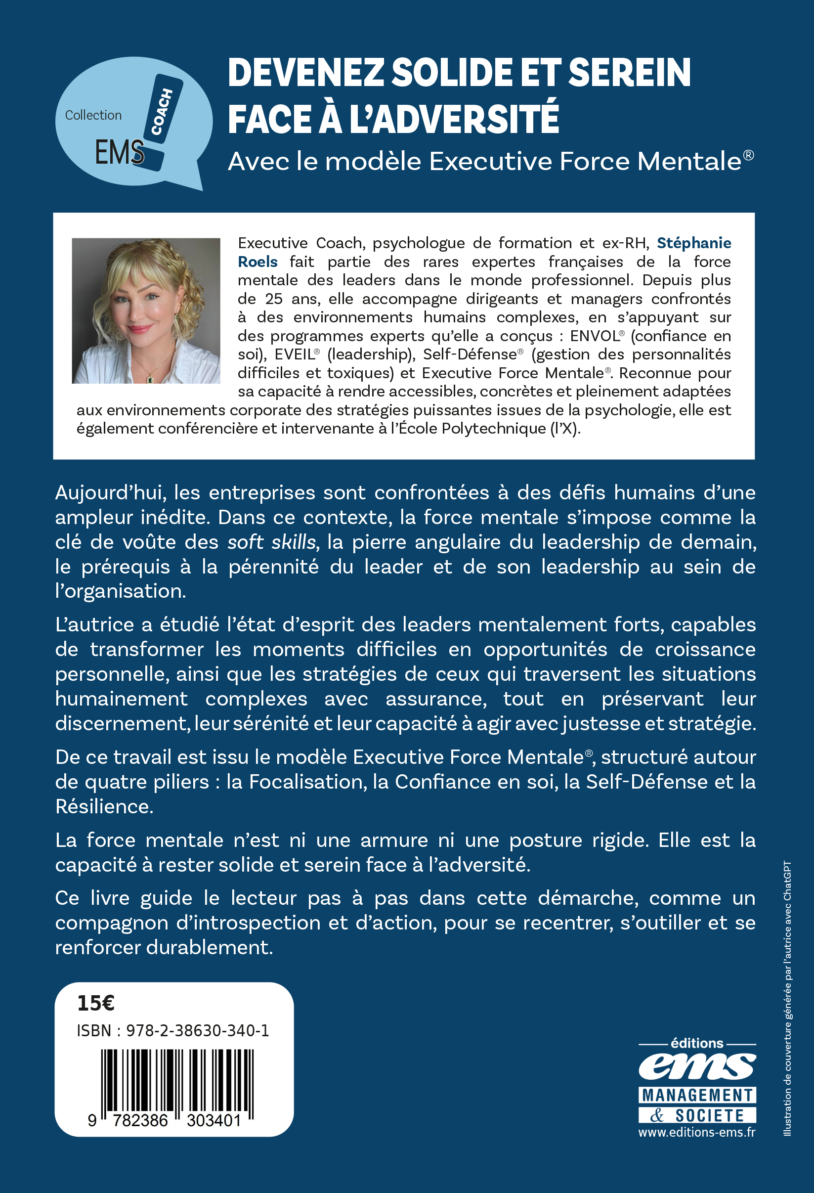 De ce travail est issu le modèle Executive Force Mentale®, structuré autour de quatre piliers : la Focalisation, la Confiance en soi, la Self-Défense et la Résilience.