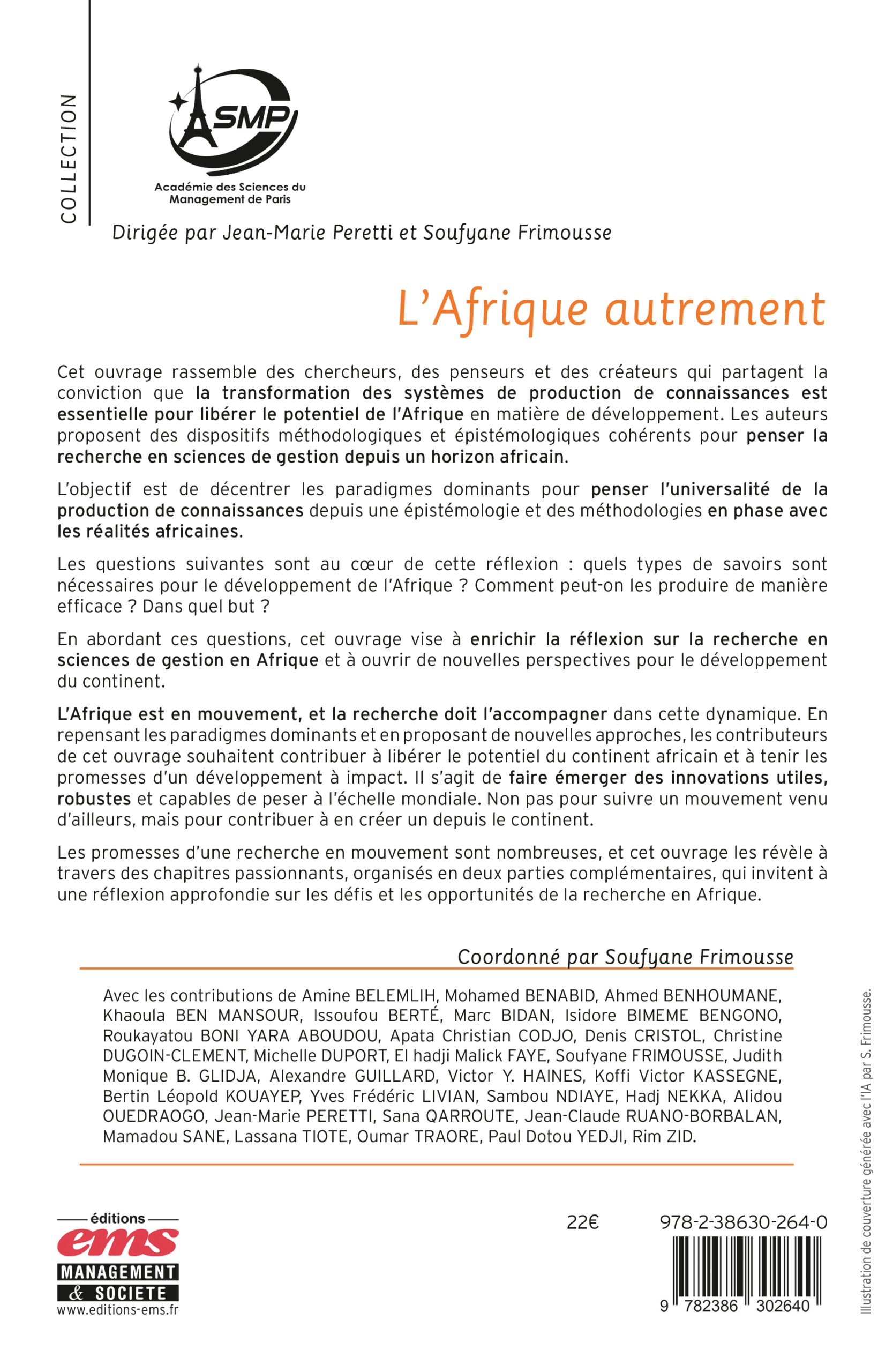 Cet ouvrage rassemble des chercheurs, des penseurs et des créateurs qui partagent la conviction que la transformation des systèmes de production de connaissances est essentielle pour libérer le potentiel de l’Afrique en matière de développement. Les auteurs proposent des dispositifs méthodologiques et épistémologiques cohérents pour penser la recherche en sciences de gestion depuis un horizon africain.
