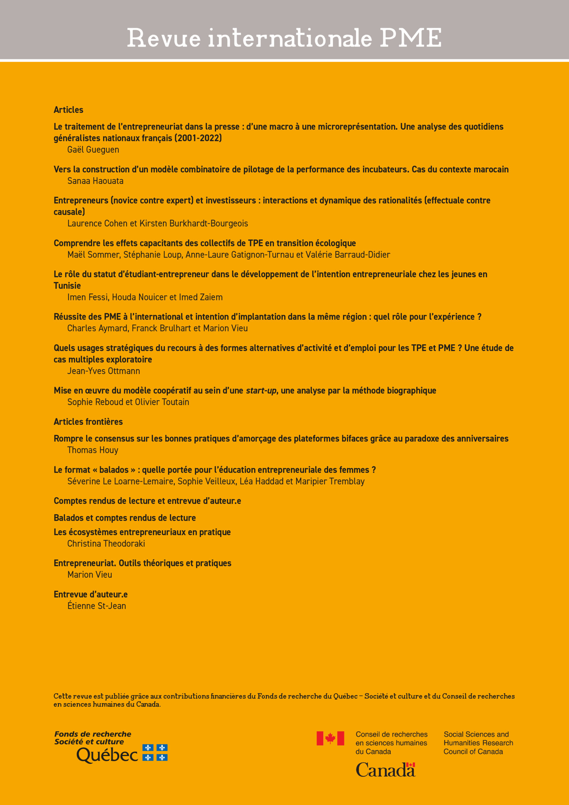 Le rôle du statut d’étudiant-entrepreneur dans le développement de l’intention entrepreneuriale chez les jeunes en Tunisie (Imen Fessi, Houda Nouicer et Imed Zaiem)
