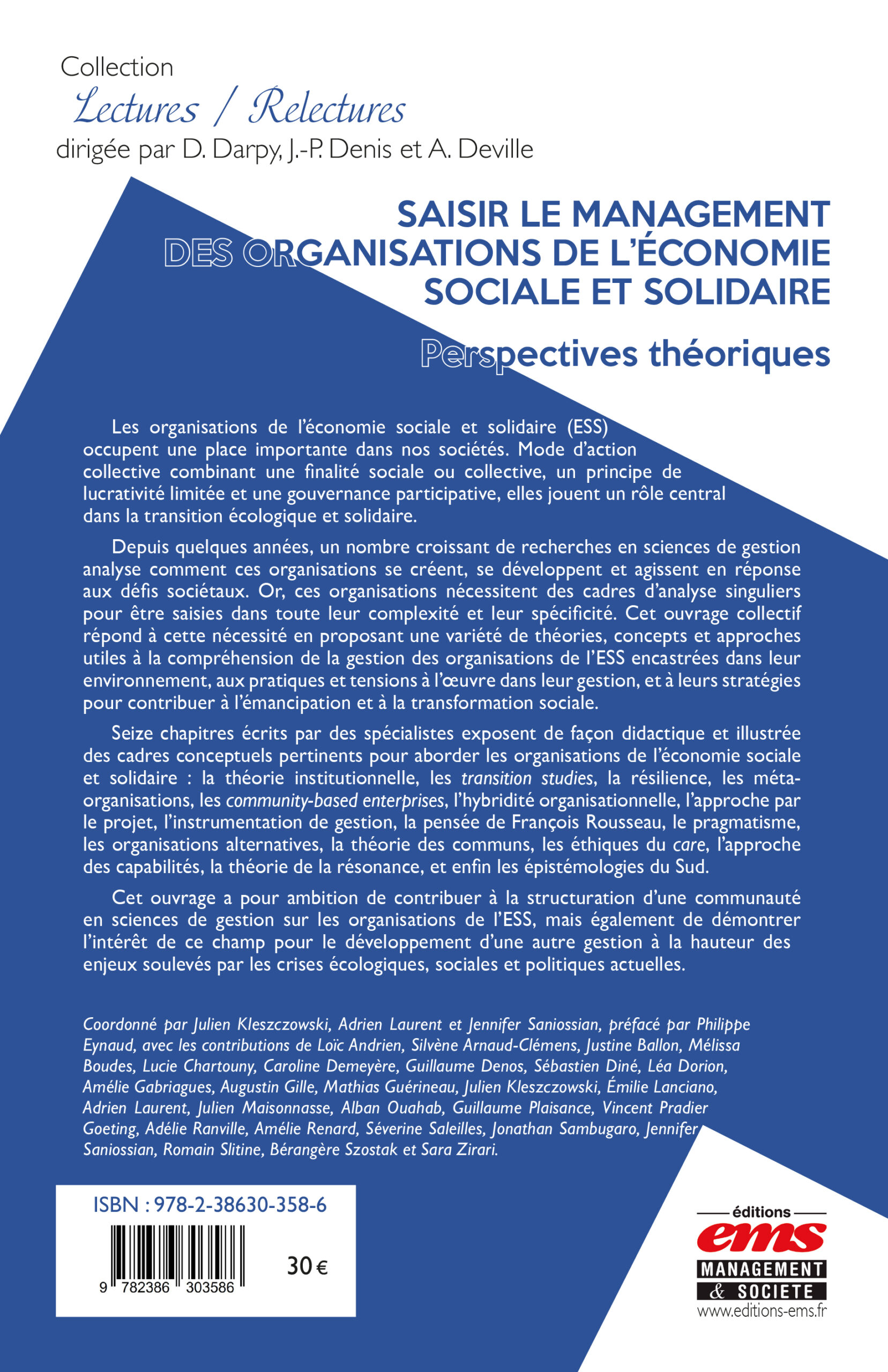SAISIR LE MANAGEMENT DES ORGANISATIONS DE L’ÉCONOMIE SOCIALE ET SOLIDAIRE